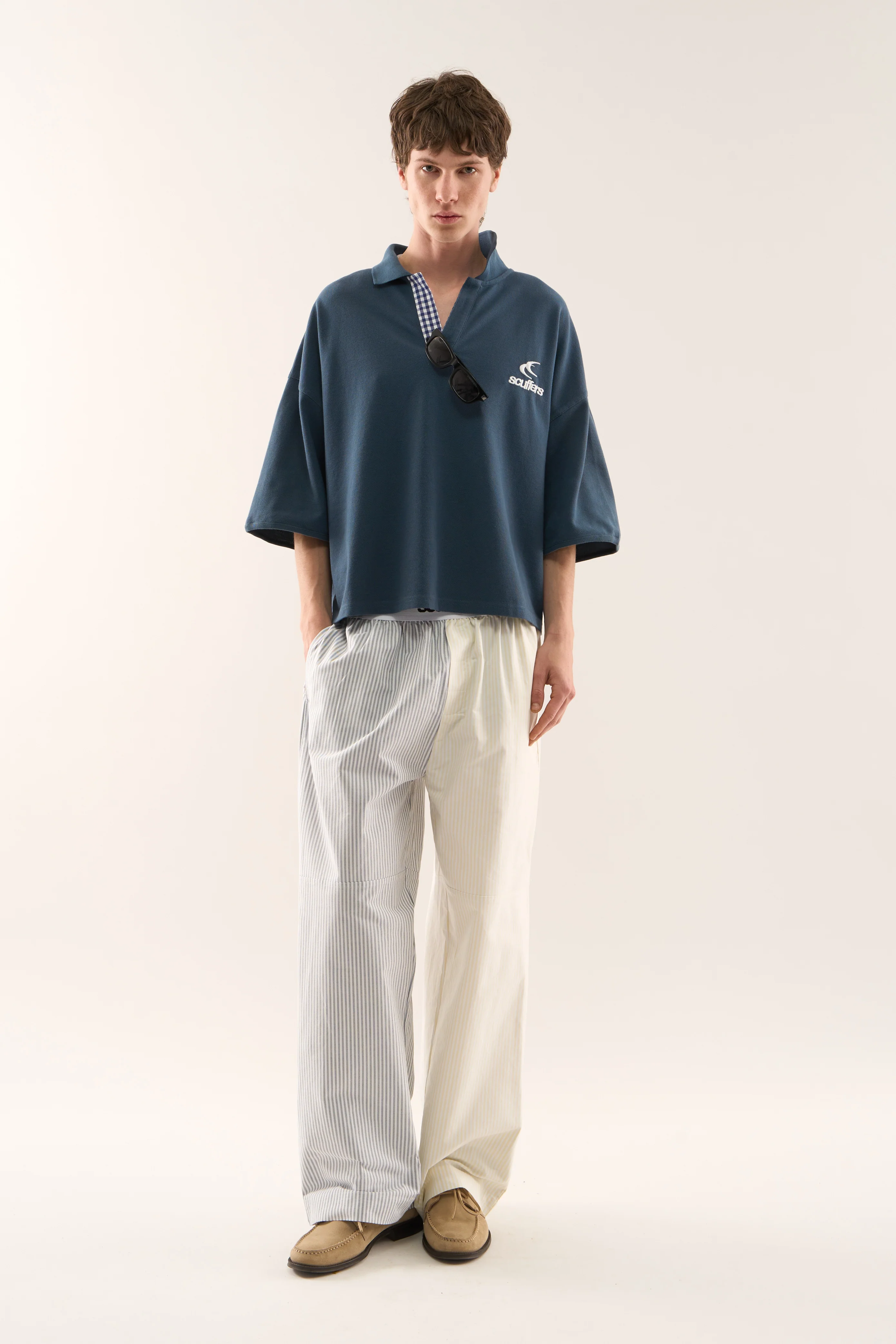 Retro-style patchwork collar polo shirt | Loose, drop-shoulder fit